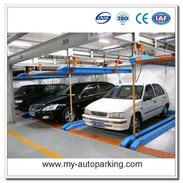 The equipment is designed with 2-levels and multi-rows and each level is designed with a space as an exchanging space. All space can be lifted automatically except the space in the top level. When the car needs to park or release, all spaces under this car space and forms lifting channel under this space. In this case, the space will go up and down freely. When it reaches the ground, the car will go out and in easily.