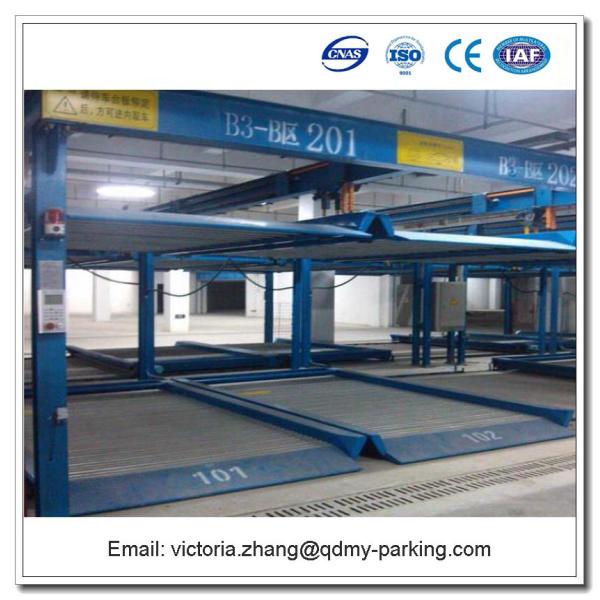 The equipment is designed with 2-levels and multi-rows and each level is designed with a space as an exchanging space. All space can be lifted automatically except the space in the top level. When the car needs to park or release, all spaces under this car space and forms lifting channel under this space. In this case, the space will go up and down freely. When it reaches the ground, the car will go out and in easily.